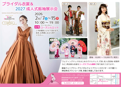 - ブライダル衣裳&2027成人式振袖展示会のお知らせ